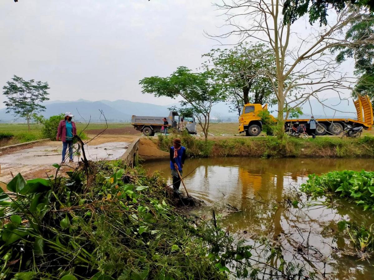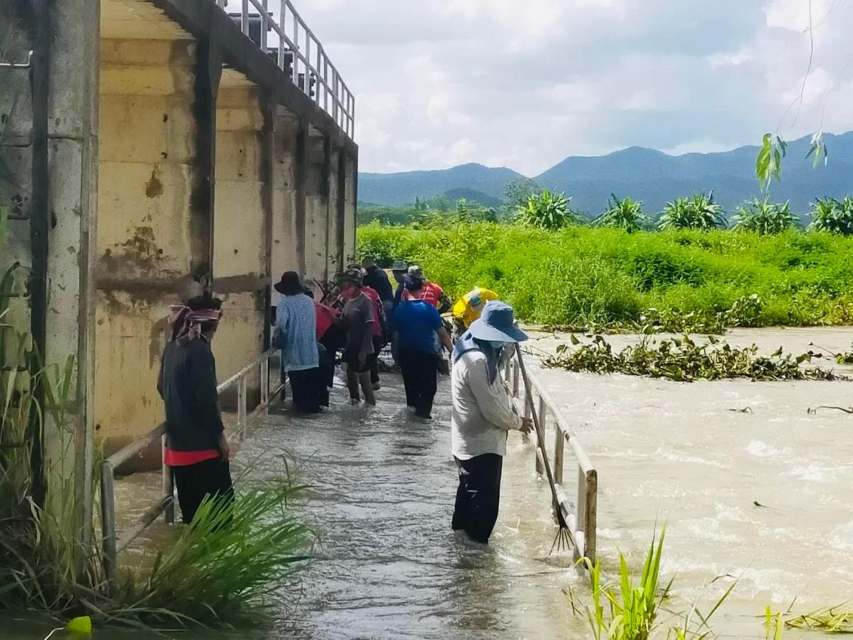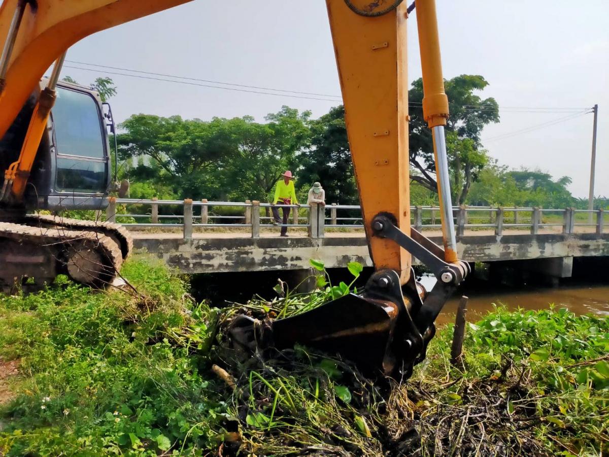 การกำจัดผักตบชวาและวัชพืชที่กีดขวางทางน้ำในแหล่งน้ำสาธารณะในพื้นที่ตำบลห้วยลาน